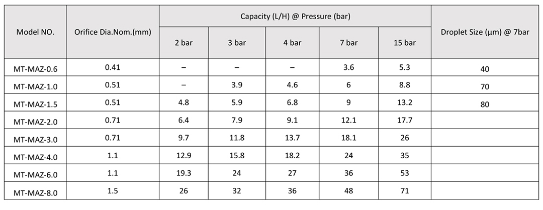 Spray distance is obtained in laboratory with spray angle 65 degree. For other spray angles, please contact our sales engineer for more information.